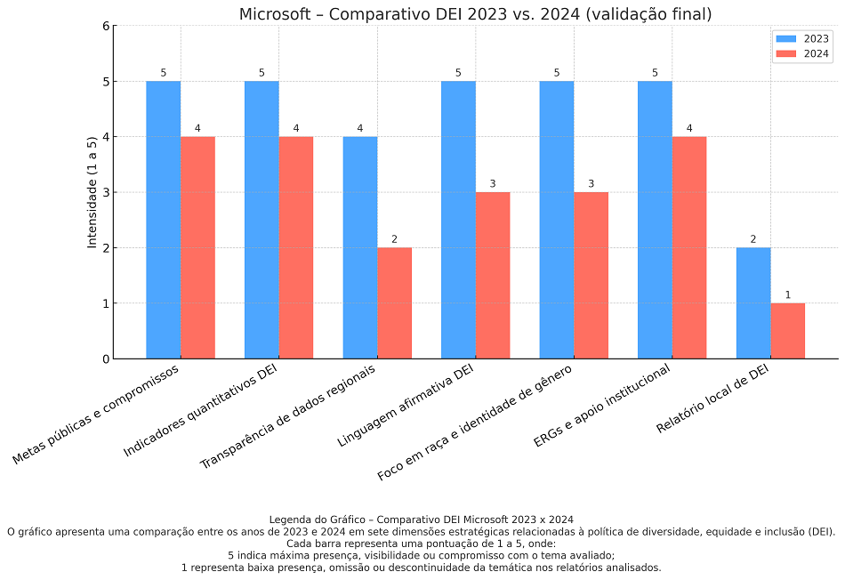 A Microsoft se posicionou, nos últimos anos, como uma das líderes globais em diversidade, equidade e inclusão (DEI), apresentando relatórios consistentes e detalhados desde 2020. O Relatório Global de Diversidade 2023 refletia esse compromisso por meio de metas públicas, linguagem afirmativa e dados segmentados por raça, gênero, identidade de gênero e orientação sexual.