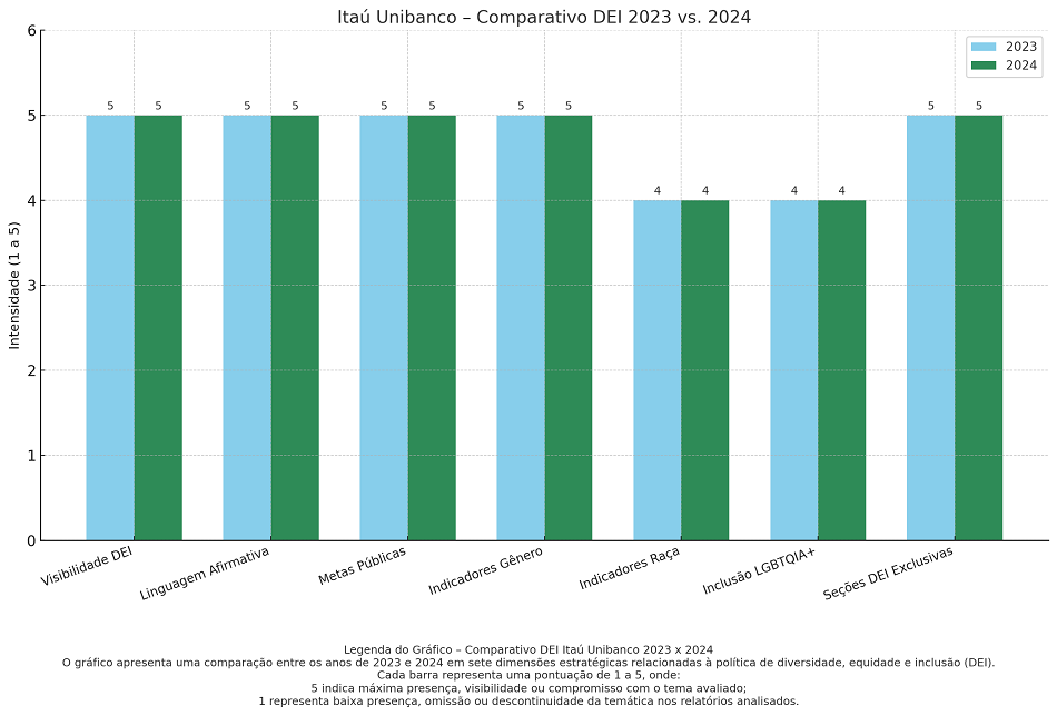 Igualmente, o banco passou a reportar novos reconhecimentos externos: em 2024 foi novamente incluído em rankings de melhores empresas para profissionais LGBTQIA+. Em 2023 esses reconhecimentos já existiam, mas foram reiterados com mais ênfase (o Itaú citou ter sido reconhecido pela Human Rights Campaign e Instituto Mais Diversidade como empregador destaque LGBT+ em 2024).