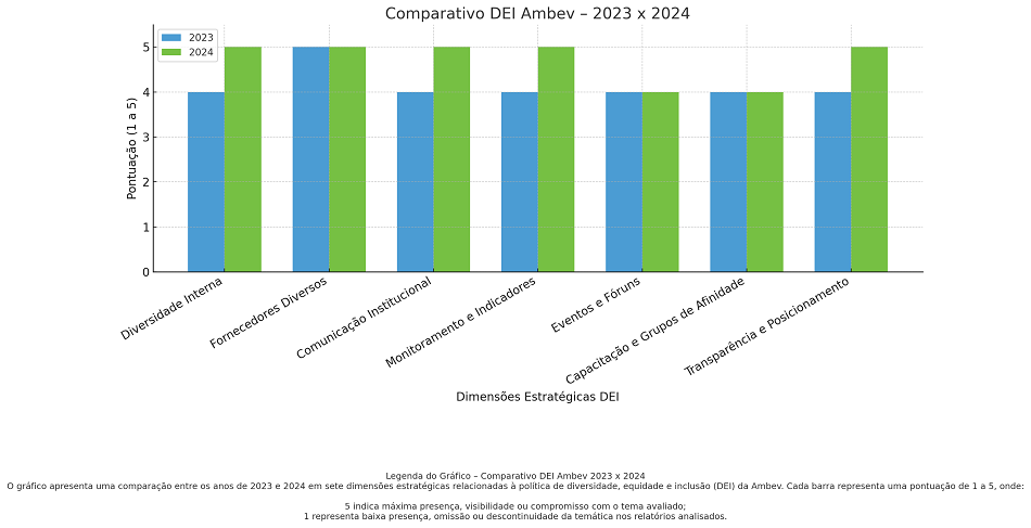 A linguagem de ambos os anos reforça o caráter prioritário do tema – em 2022/23 dizia-se que “diversidade é prioridade” e vai além de categorias específicas, e em 2024 isso não mudou. Portanto, não houve superficialização nem omissão em 2024; a Ambev segue tratando os temas de forma estratégica.