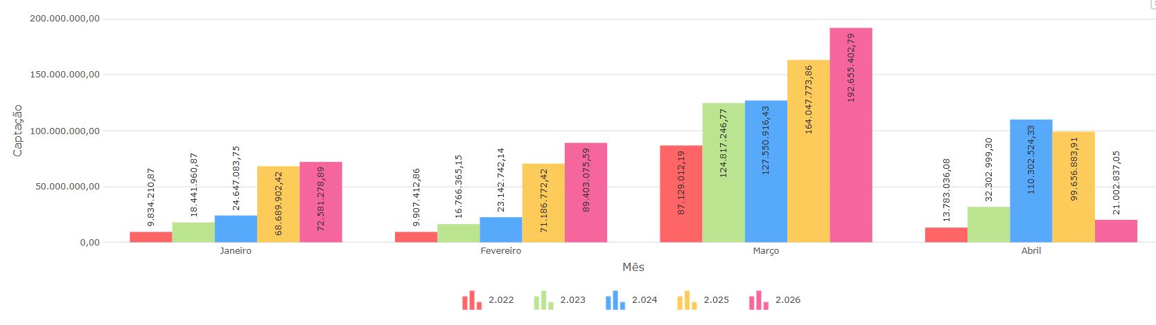 2022: A captação de janeiro a novembro representava apenas 33,40% do total (R$ 706 milhões), enquanto dezembro concentrava 66,59% (R$ 1,4 bilhão).